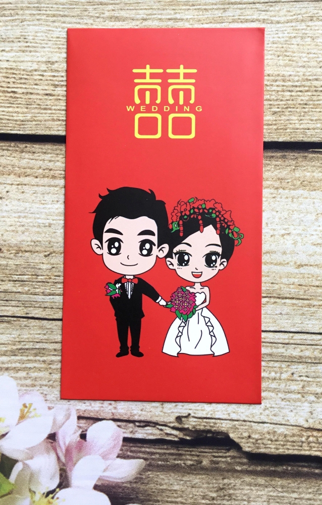 Mẫu bao lì xì họa tiết đẹp hình cô dâu chú dể dập nổi với váy và ves đẹp chữ song hỉ và wedding mang lại sự sang trọng và đầy ý nghĩa